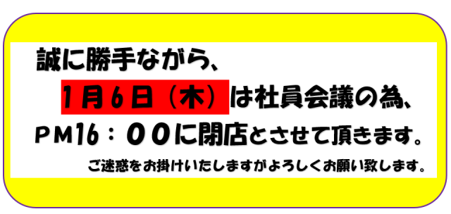 年末年始の営業日を下記の通りご案内申し上げます。
