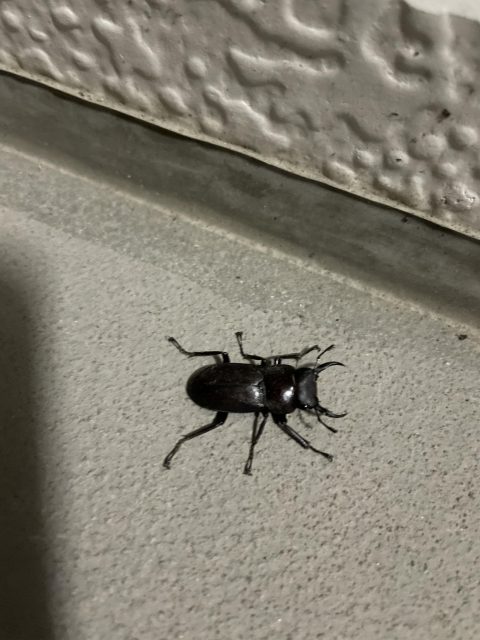 先日玄関でクワガタを発見しました!