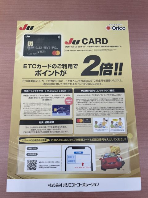 JUカードでのETCご利用でポイントが『2倍』になります!!