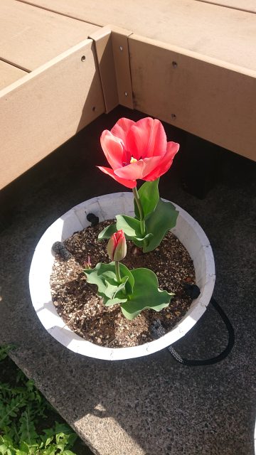 奥さんと子供たちが植えたチューリップも!