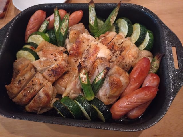 しかも・・ズッキーニとオクラと言う夏野菜の王にウィンナーまで入っている!!!