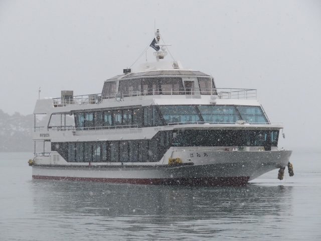 雪の中の遊覧船「あおば」をパシャリ。