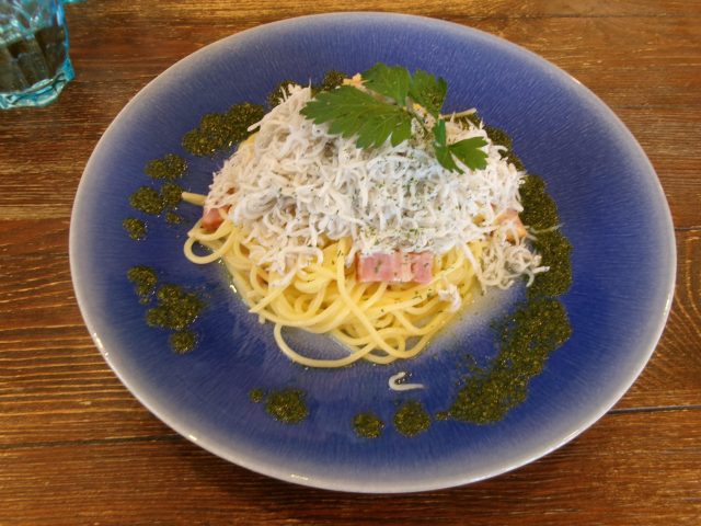 先日、カフェでしらすパスタを食べました!!